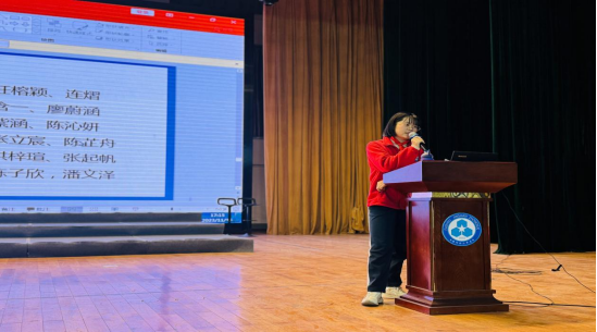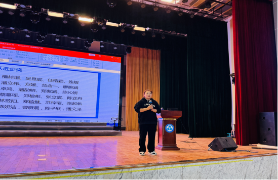 接着余莹段长强调日常行为规范并进行期中考表彰。在颁奖过程中,段长强调了学生们在这个学期的表现,并为他们今后的学习提出了更高的期望。同时,她也鼓励其他同学向这些获奖同学学习,以他们为榜样,秉持魁星踢斗、独占鳌头的霸气,怀揣中流击水、浪遏飞舟的勇气,拥有力挫群雄、蟾宫折桂的锐气,心怀决战中考、金榜题名的豪气,手握命运的航舵,驶向梦想的彼岸,再创金中新高度。