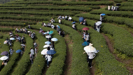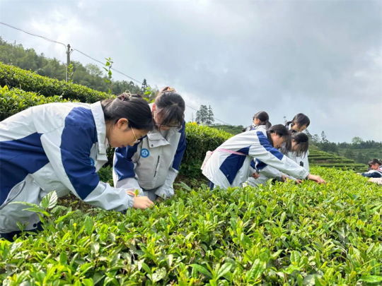 谚语说:“清明见芽,谷雨见茶”,说的即为谷雨前后是采茶制茶的好时节,这时候的茶受气候滋润,幼嫩的小芽迅速长成鲜叶,人们普遍认为这个时候的茶滋味最为鲜浓。建宁拥有悠久的茶文化历史,优越的自然条件不仅赋予了建宁仙境般的自然环境,也赋予了建宁得天独厚的产茶条件。同学们来耕山队茶叶园学习和传承世界非物质文化遗产“中国传统制茶技艺及其相关习俗”,首先由专业的老师傅向大家介绍茶叶采摘技巧,同学们迫不及待的带上竹编茶篓,在茶田间穿梭,亲手采摘茶叶,品嗅茶树的清香,抚摸娇嫩茶芽的青绿。学习采摘技巧,感受采茶的艰辛与不易。