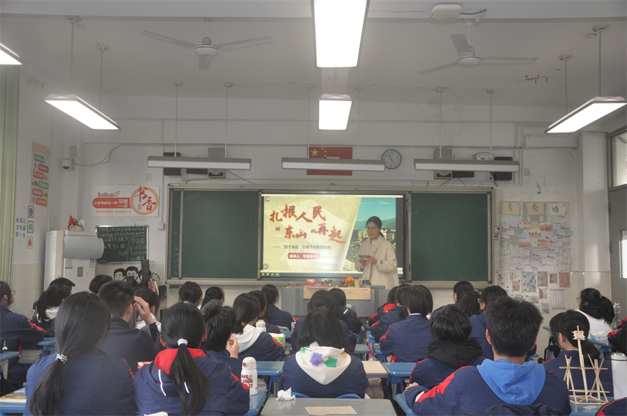 宣讲员董文倩以一位村民的亲身经历导入,带领师生亲历东山村三十年沧桑巨变。通过讲述习近平同志多次深入东山村开展实践调研的故事,结合珍贵历史影像,系统阐释"四下基层"工作法如何破解贫困困局:从易地搬迁的民生工程,到生态产业的可持续发展,东山村用"搬得出、稳得住、能致富"的生动实践,绘就"小康中心村"的乡村振兴样本。