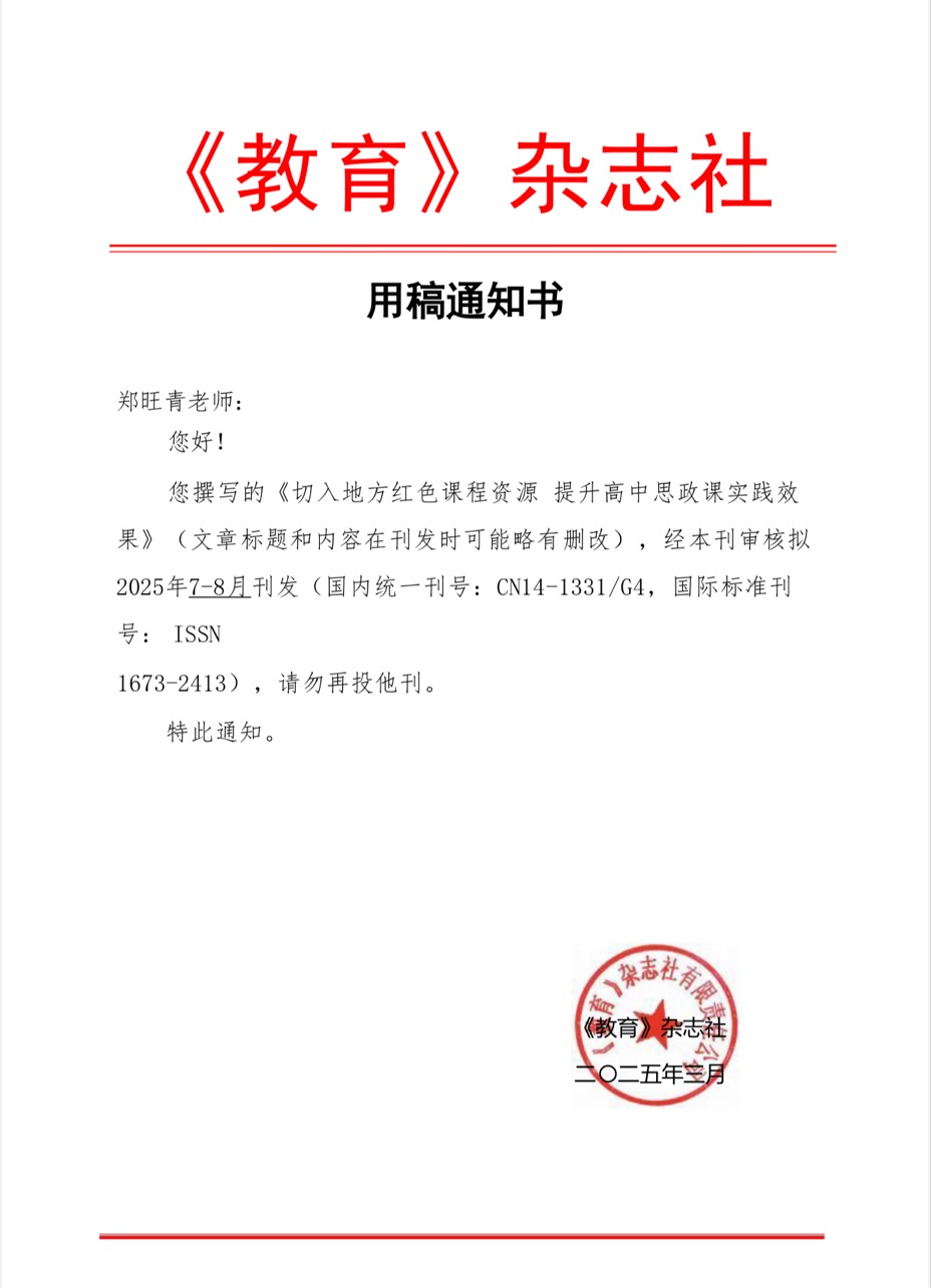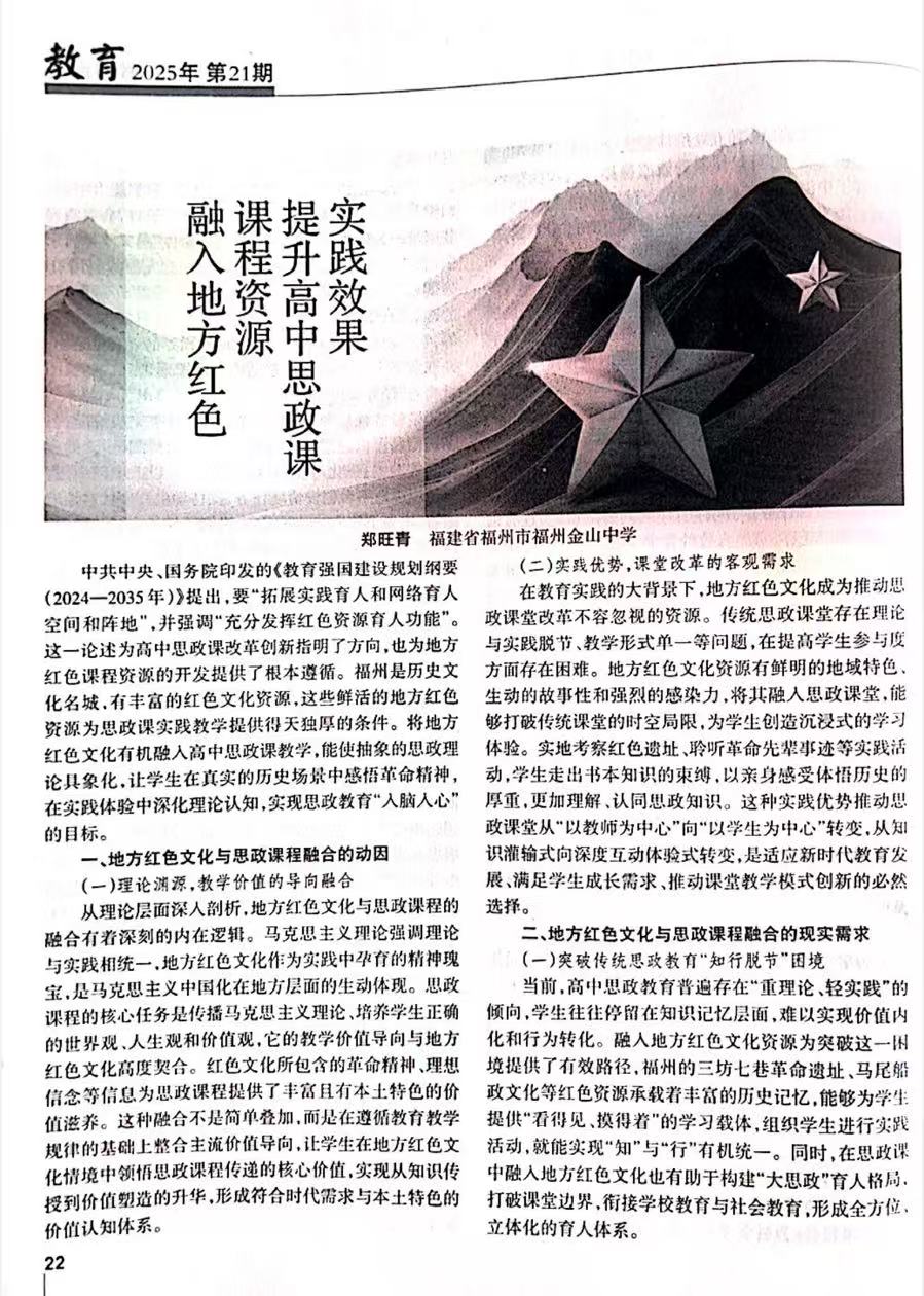郑旺青 融入地方红色课程资源,提升高中思政课实践效果 教育