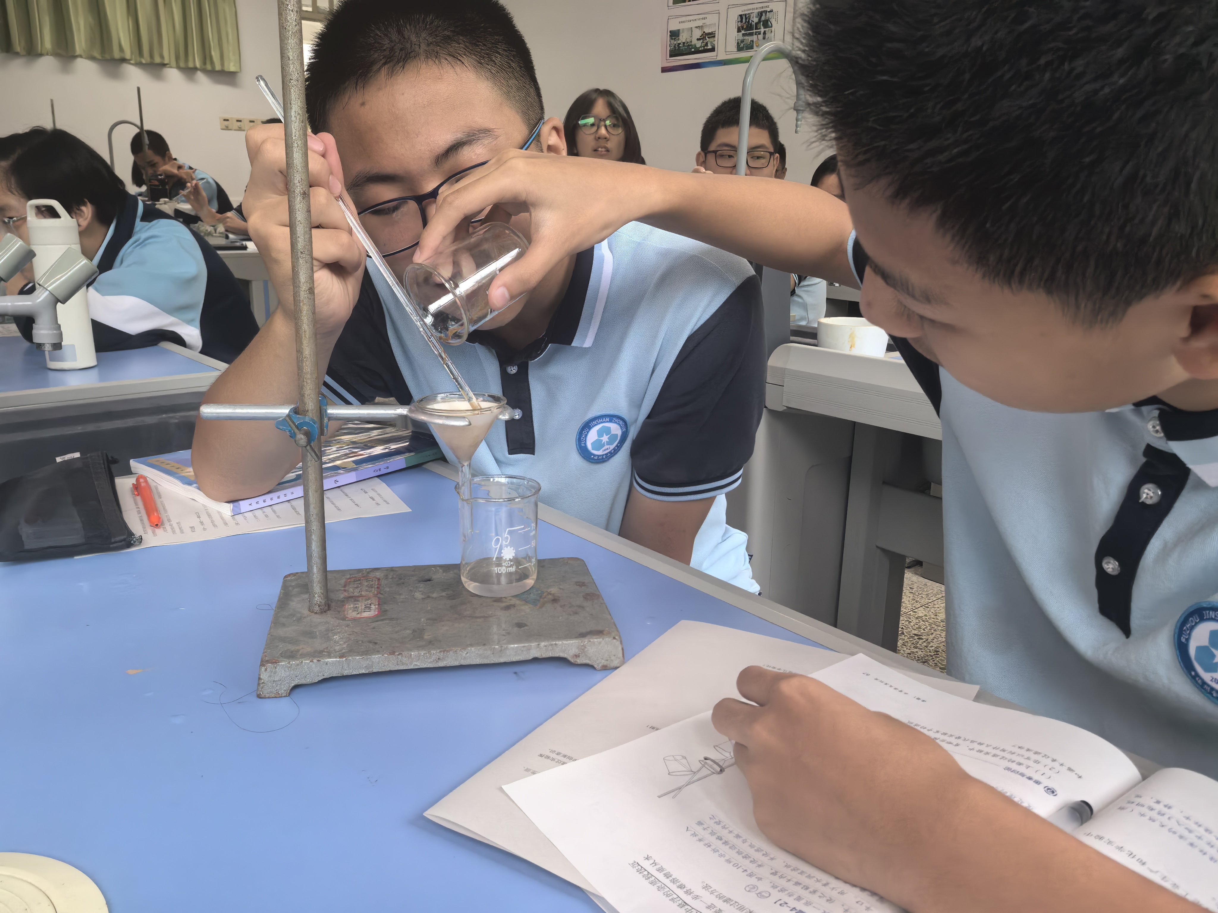 化学组黄珊老师于九年6班执教的《水资源及其利用——水的净化》课程,是一堂以核心素养为引领,深度融合知识学习、实验探究与生活价值的优质化学课例。该课以“水的净化”为核心线索,创新性地运用“感知—理解—实践—创新”的任务驱动教学模式,精巧串联分析自然界水的成分、探究古今净水方法、开展过滤与吸附实验等教学环节。这不仅使学生系统地掌握了沉淀、过滤、吸附等净水技术,更在实验探究过程中有效提升了科学探究能力,成功构建了物质分离提纯的思维模型,并促使学生将净水知识应用于生活实际,树立了节约用水、保护水资源的意识。整堂课教学目标清晰明确,教学设计新颖独特,教学过程流畅自然,充分彰显了“教师主导、学生主体”的教学理念,展现了授课教师扎实的专业素养与卓越的课堂驾驭能力,高度契合新课程标准的要求。