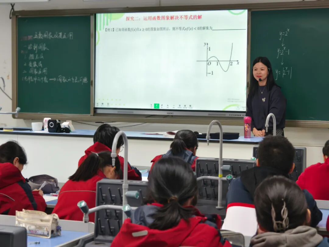 高一年级吴必萍老师通过《函数图象及其应用》一课,依托智慧课堂平台,实现高效的师生与生生互动,营造出积极深入的课堂氛围。她精选例题与分层练习,引导学生掌握数形结合方法,推动代数问题向图形问题的转化。借助互动与实时拍照上传功能,吴老师精准把握学情,优化教学决策,在动态演示与图象分析中有效提升学生的直观想象与逻辑推理能力,全面落实数学学科核心素养的培养目标。