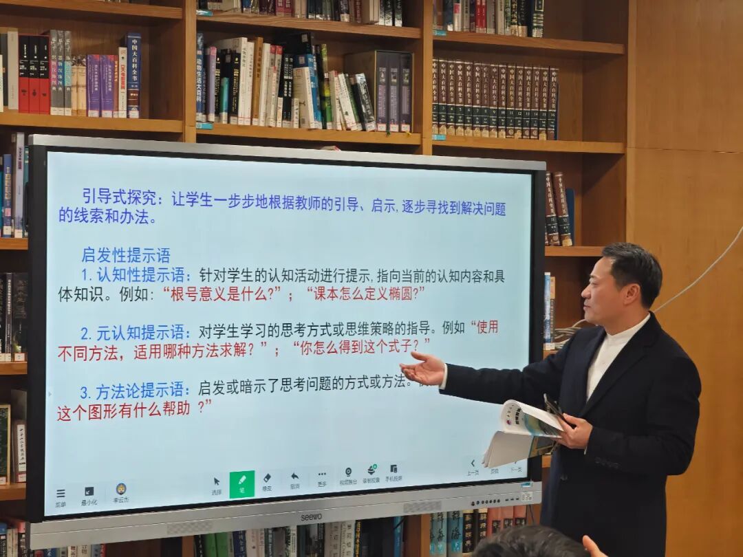 同时,为进一步扩大课堂示范效应,蔡海涛老师通过《素养导向下新高考数学命题嬗变与备考策略研究》的专题讲座,提出备考应实现五大转向:从知识覆盖转向概念本质、打破知识孤岛、强化数学建模、平衡模型训练与思维破局,最终落实素养统领,实现科学备考与育人效能的双重提升。