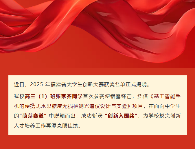 喜报| 金中学子斩获2025年福建省大学生创新大赛萌芽赛道 “创新入围奖”!