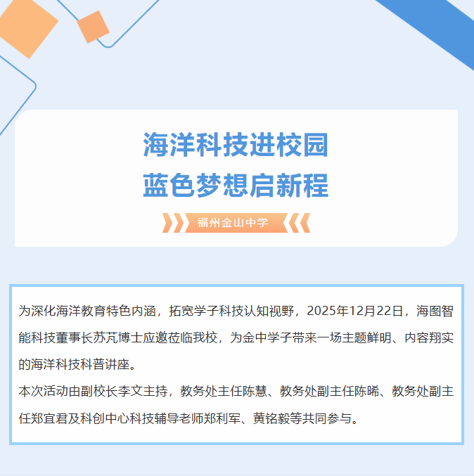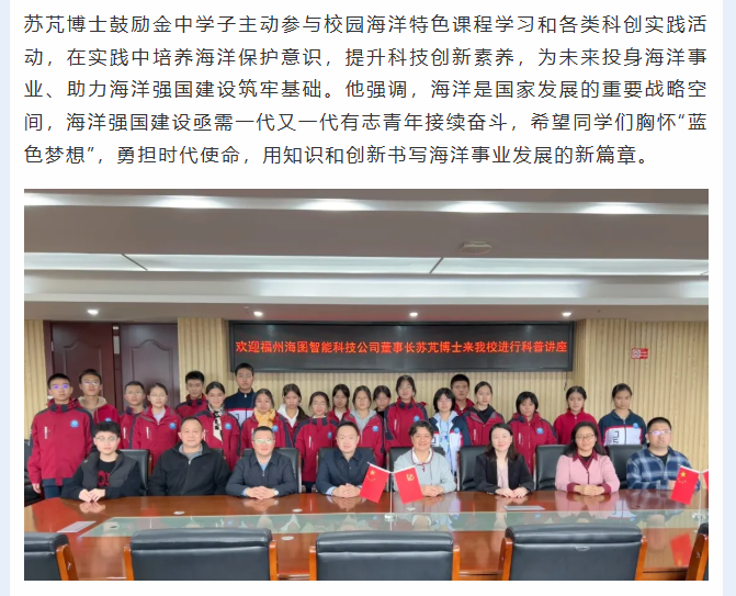 海洋科技进校园 蓝色梦想启新程 | 海图智能科技苏芃博士莅校开展科普讲座