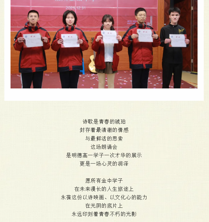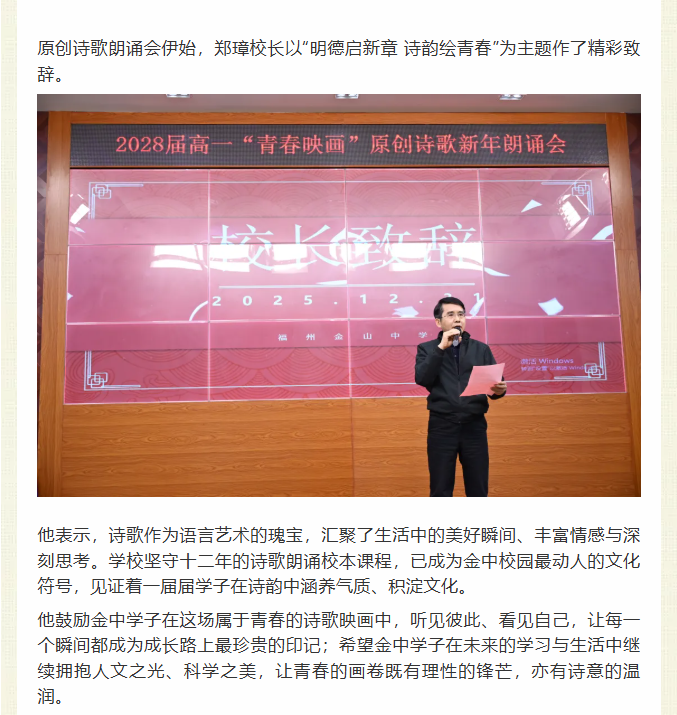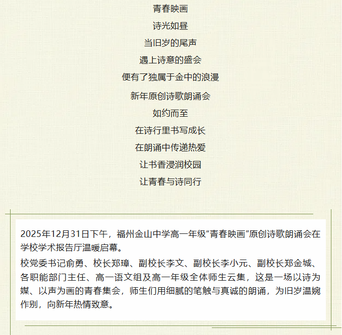 青春映画•诗光如昼 | 福州金山中学高一年级举办2026年原创诗歌朗诵会